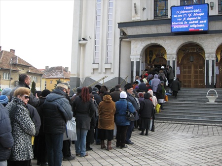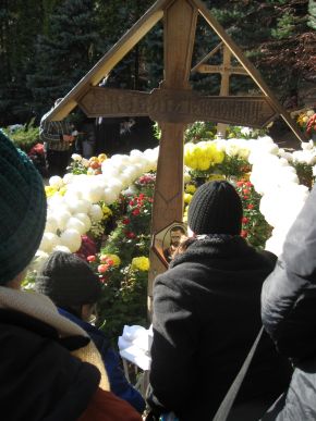 Creştinii veniţi la inchinare la crucea Părintelui ARSENIE BOCA au sărutat cu evlavie icoana - portret.PRISLOP 28.NOI.2009