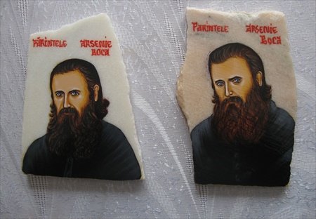 - Părintele Arsenie BOCA - MODEL 1. Un CADOU potrivit pentru cei dragi !!! Marmură de RUŞCHIŢA...Banat.- Cu tot cu suport metalic !!! - Mărimea icoana stânga 11/14 cm = ... lei - Mărimea icoană dreapta pe marmură 10/15 cm = ... lei..