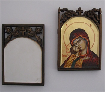 - Arsenie BOCA - MODEL 1. - LEMN NATUR cu traverse pe verso !!! Mărimea 21/30 cm = ... lei... - Varianta cu foiţă de aur de 22kt preţ = ... lei.